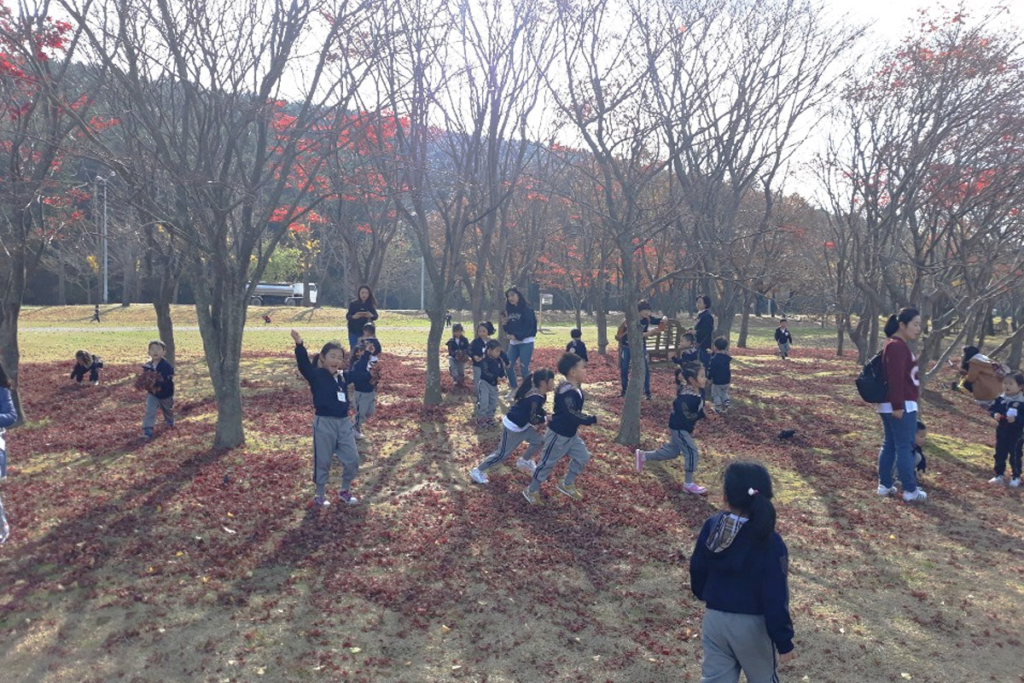 단풍나무 아래서 즐거워하는 친구들^^