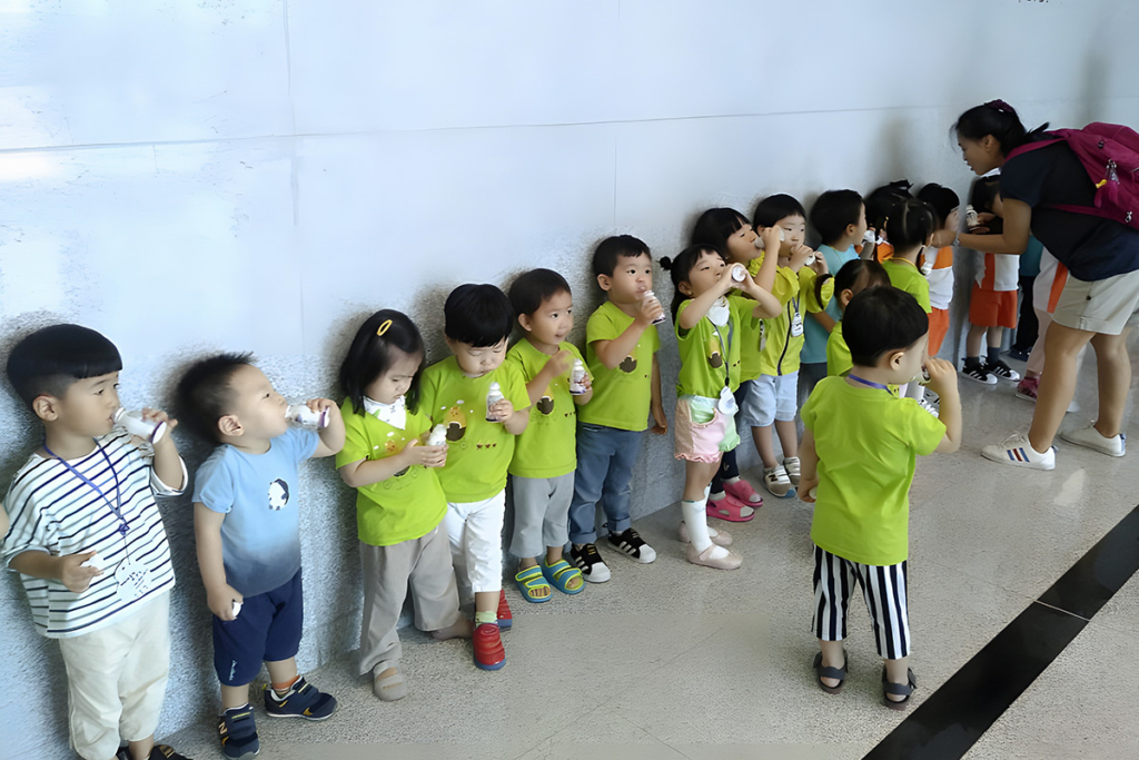 요구르공장견학 1층 로비에서~ 런 1병씩 꿀꺽!