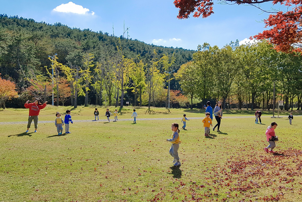 하늘에는 조각구름~~ 잔디에는 단풍나뭇잎~~