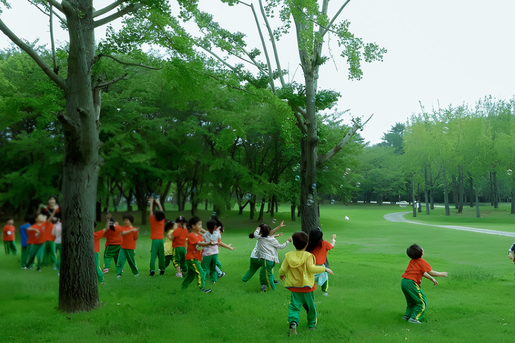 신앙촌 군락지에서~ 어린이집 선생님과 함께 비누방울놀이하는 친구들*****