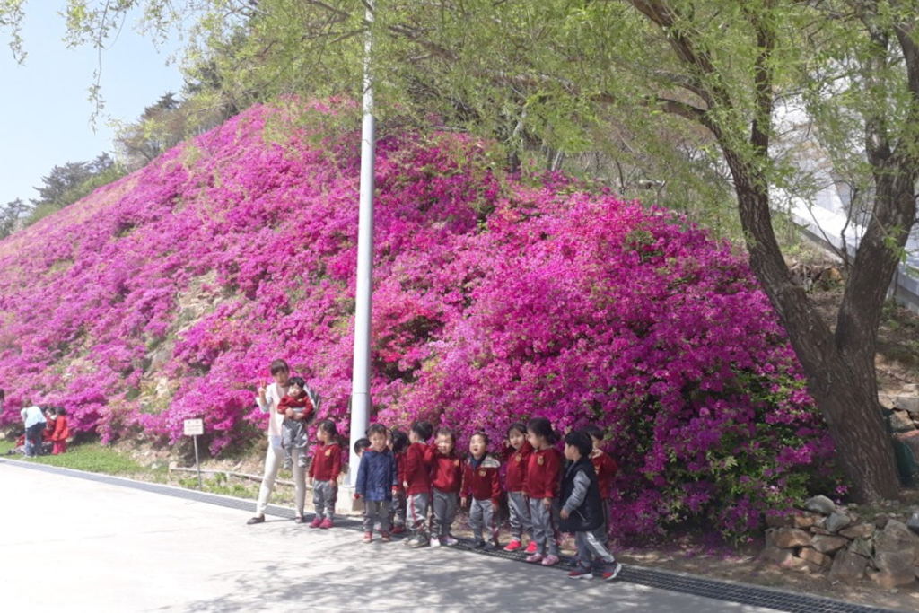 매년 4월 신앙촌절개지에 피어나는~ 영산홍 벽지를 배경으로 추억의 사진찍어봅니다.~~
