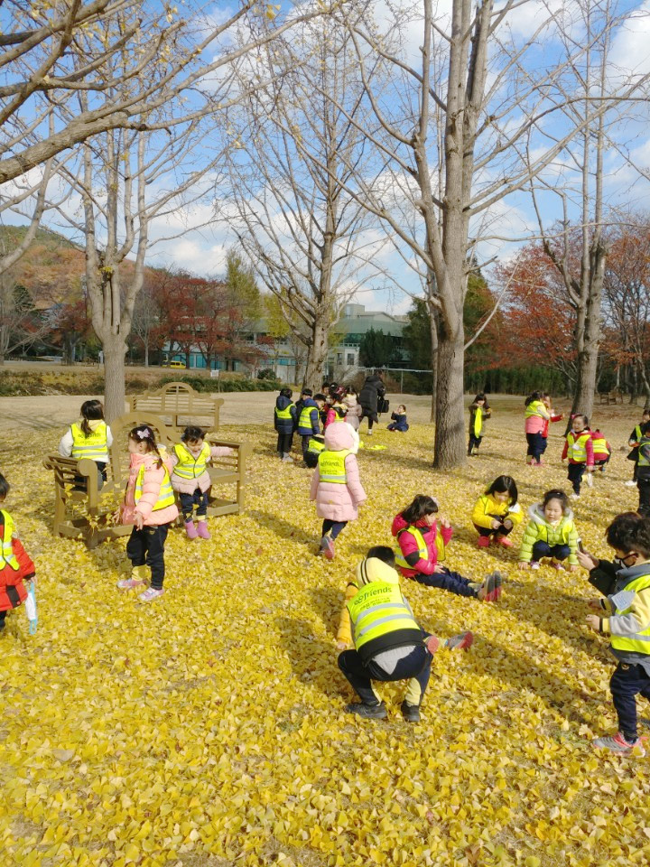와~은행나무에서 노오란 은행잎이 떨어졌어요~