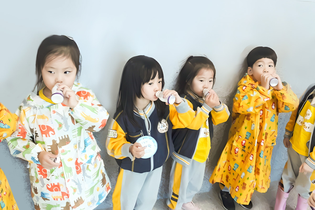 비가왔지만… 우비입고 견학온 친구들~ 비를 뚫고 견학와서 그런지~~ 런 요구르트가 정말 맛있어요~
