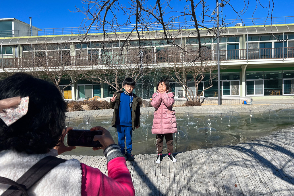 밥먹고 식당앞에서 꽃받침하고 사진~~