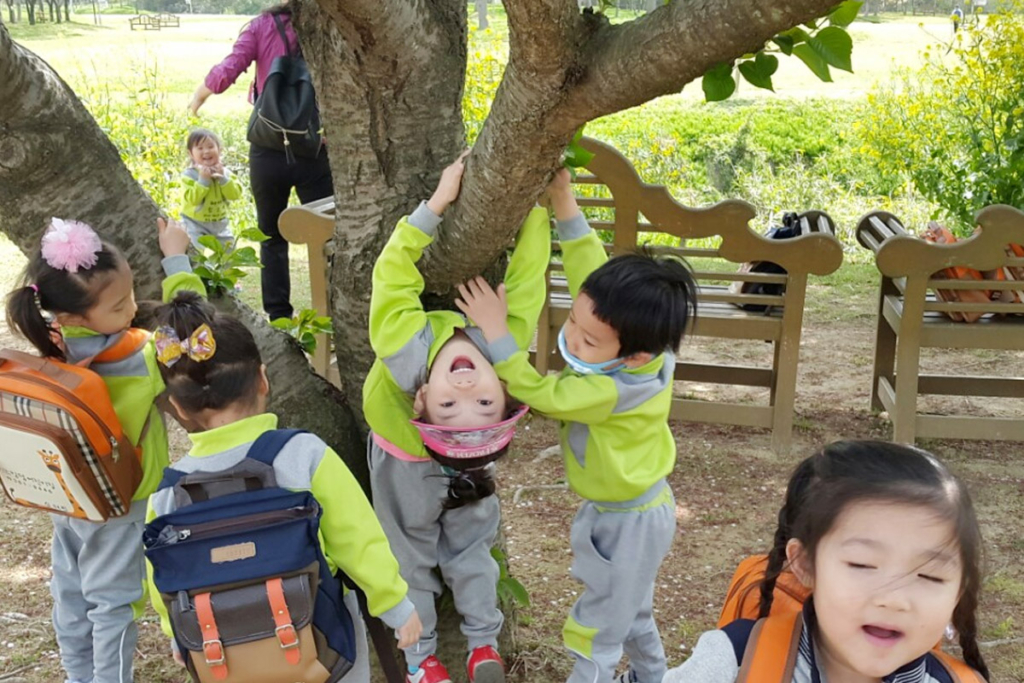 벚꽃나무에 매달리기…